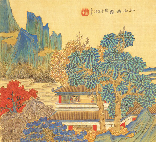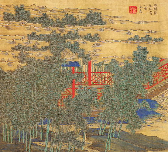 (清 任薰作品 此画富有装饰性,颜色对比强烈,严谨而不板,简练而有意境,用笔工细而整体效果好。)