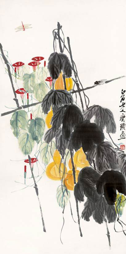 齐白石-葫芦牵牛花图